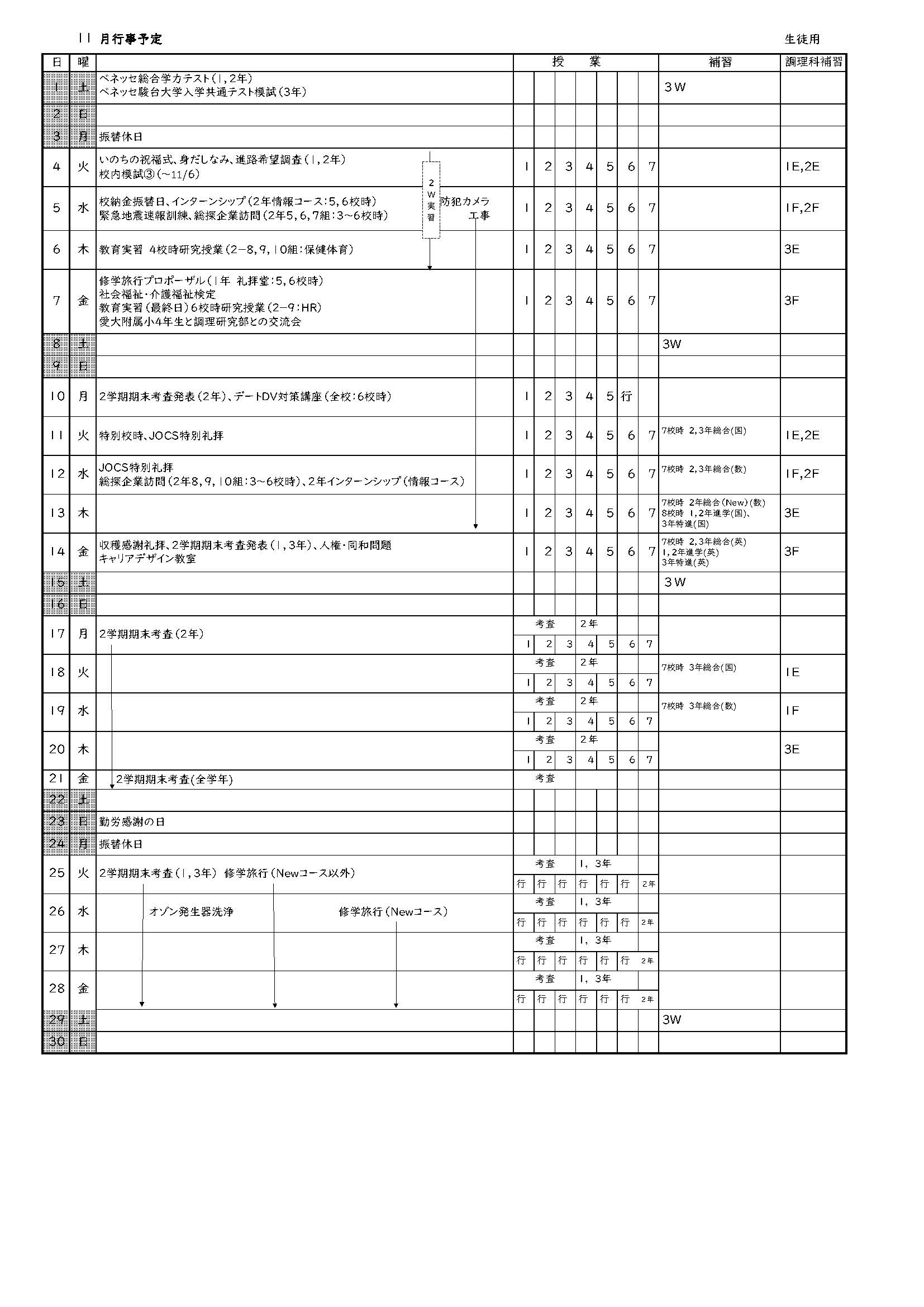11月 行事予定