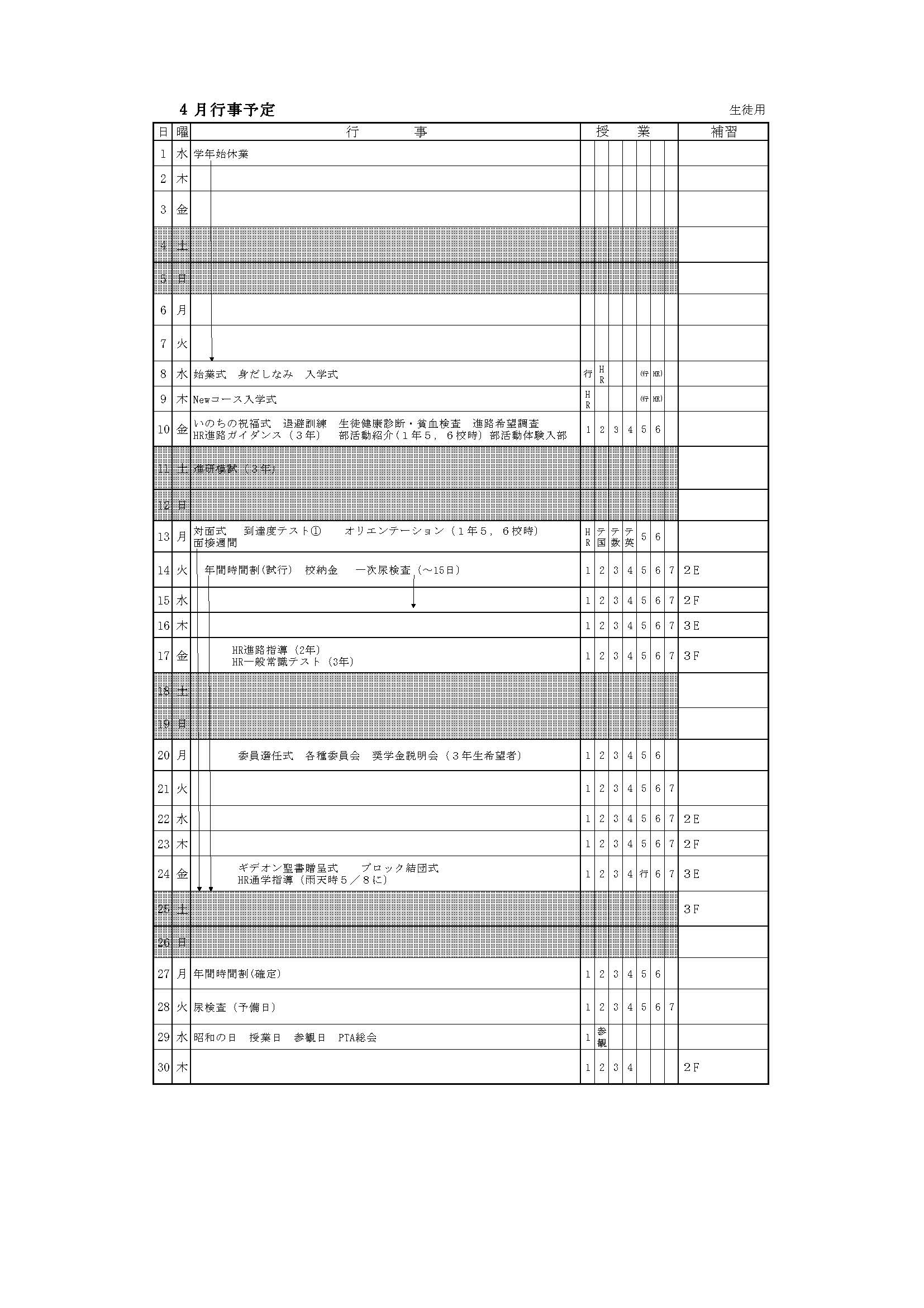 4月 行事予定