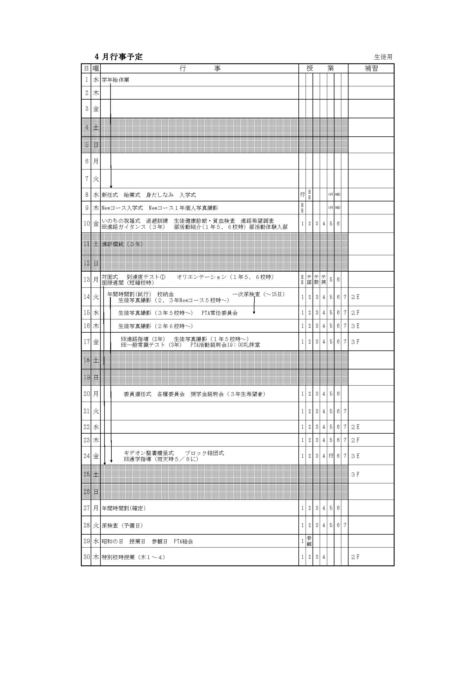 4月 行事予定