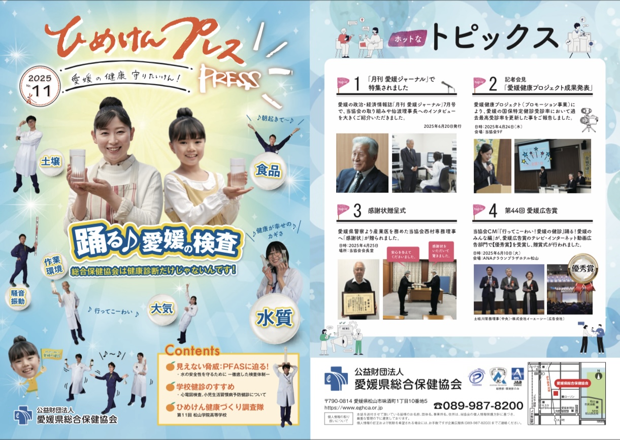 (公財)愛媛県総合保健協会が発行している「ひめけんプレス」に、生徒・教職員の健康づくりに関する本校の取組が紹介されました。