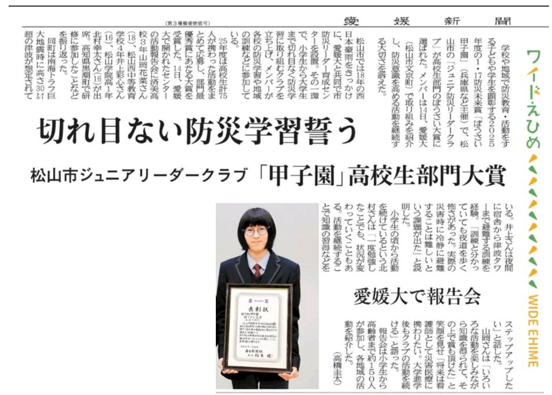 ジュニア防災クラブ大賞☆新聞記事より